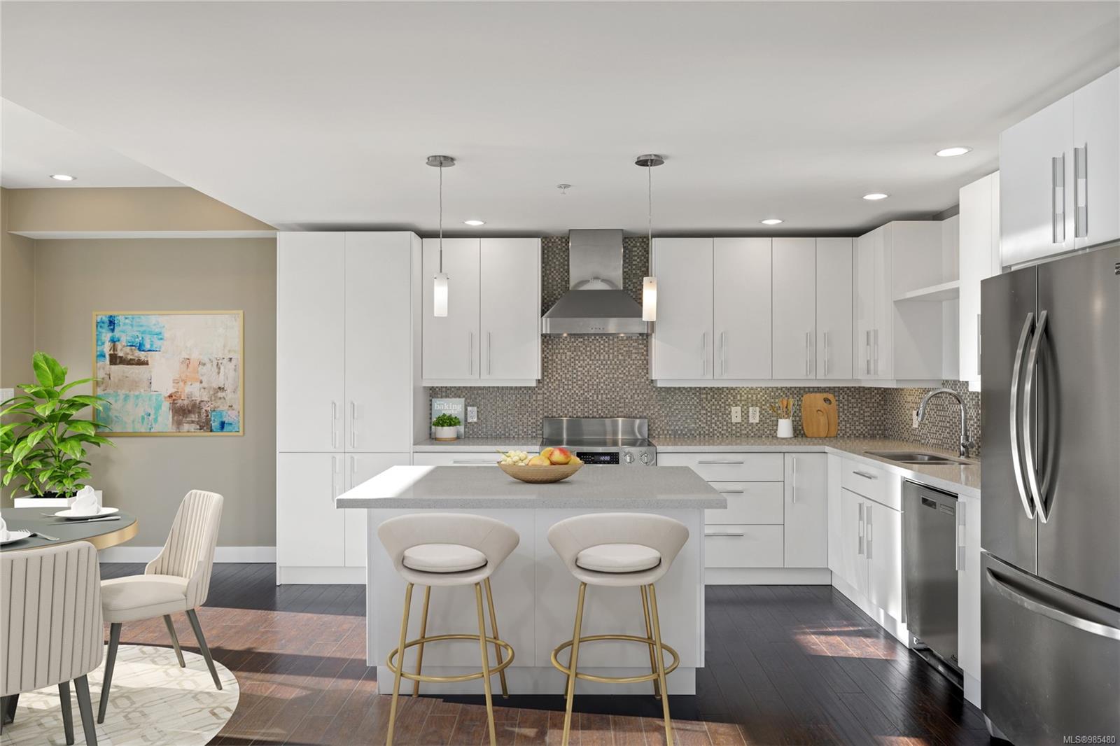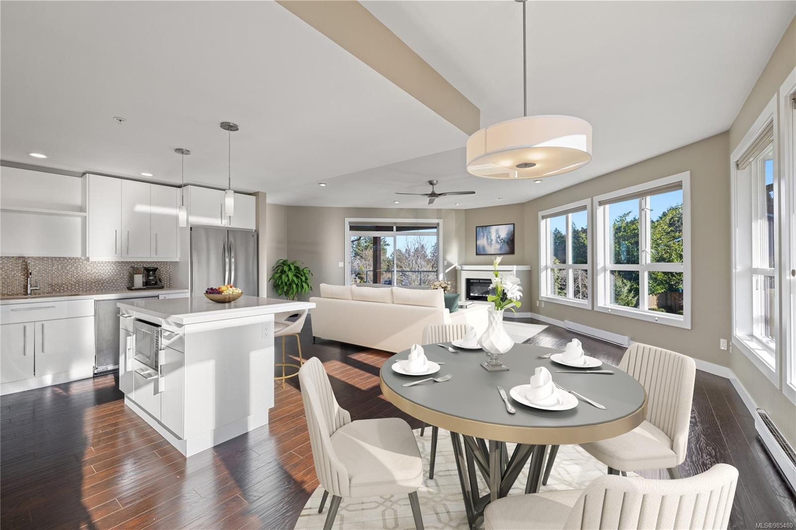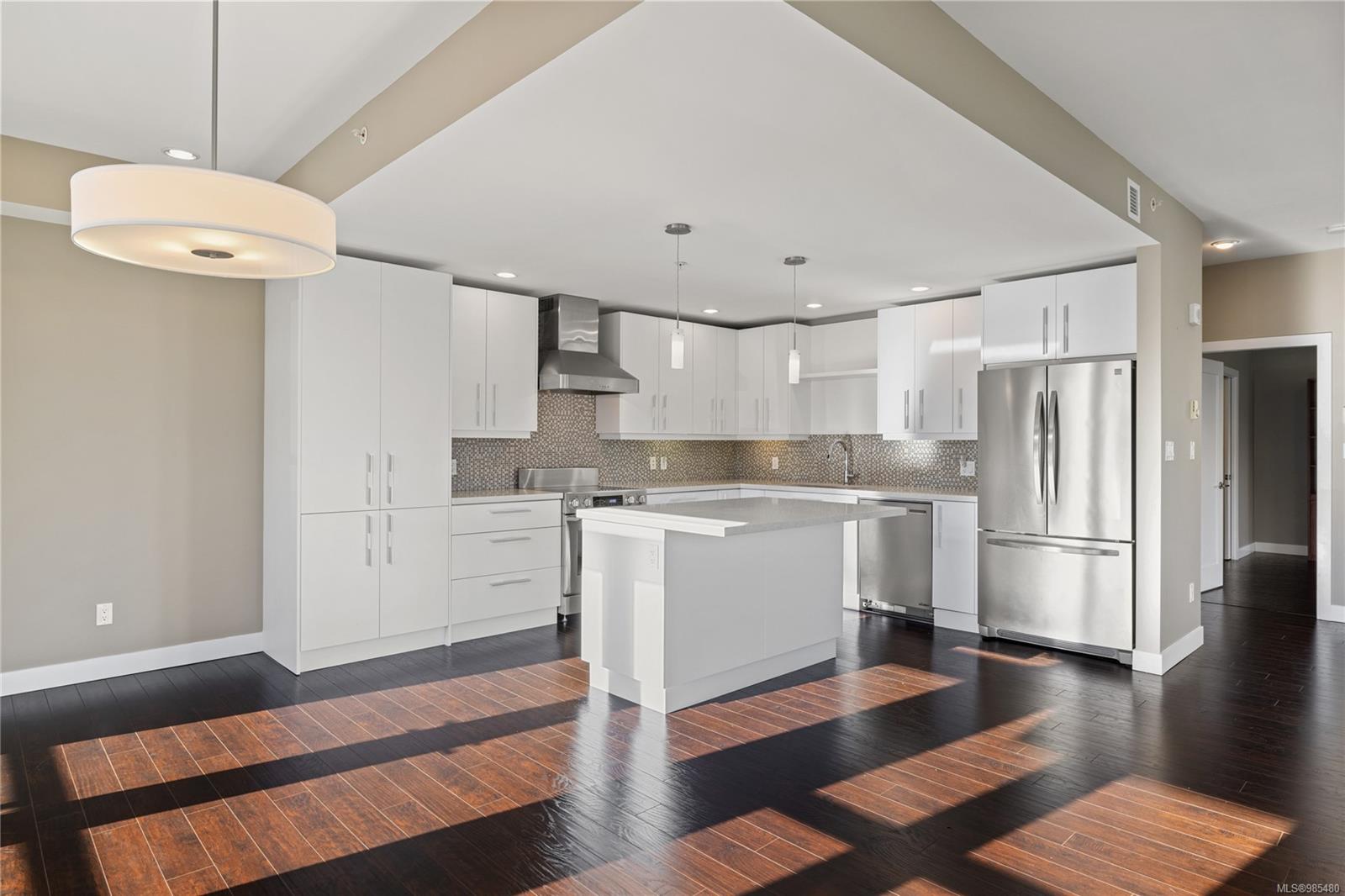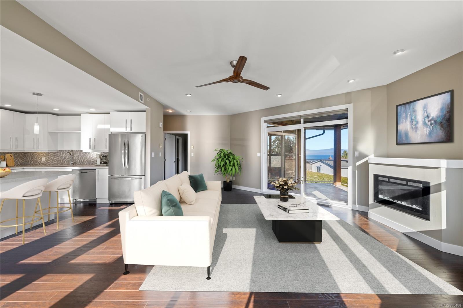 This expansive 1800 sq. ft. top-floor condo offers the size of a home with none of the maintenance. Enjoy stunning ocean views from the bright, open-concept great room, complete with oversized windows, a cozy linear fireplace, and access to a covered deck perfect for relaxing or entertaining. The gourmet kitchen features custom cabinetry, quartz countertops, and high-end stainless-steel appliances, while the dining area opens onto an expansive south-facing deck ideal for enjoying the sunshine.